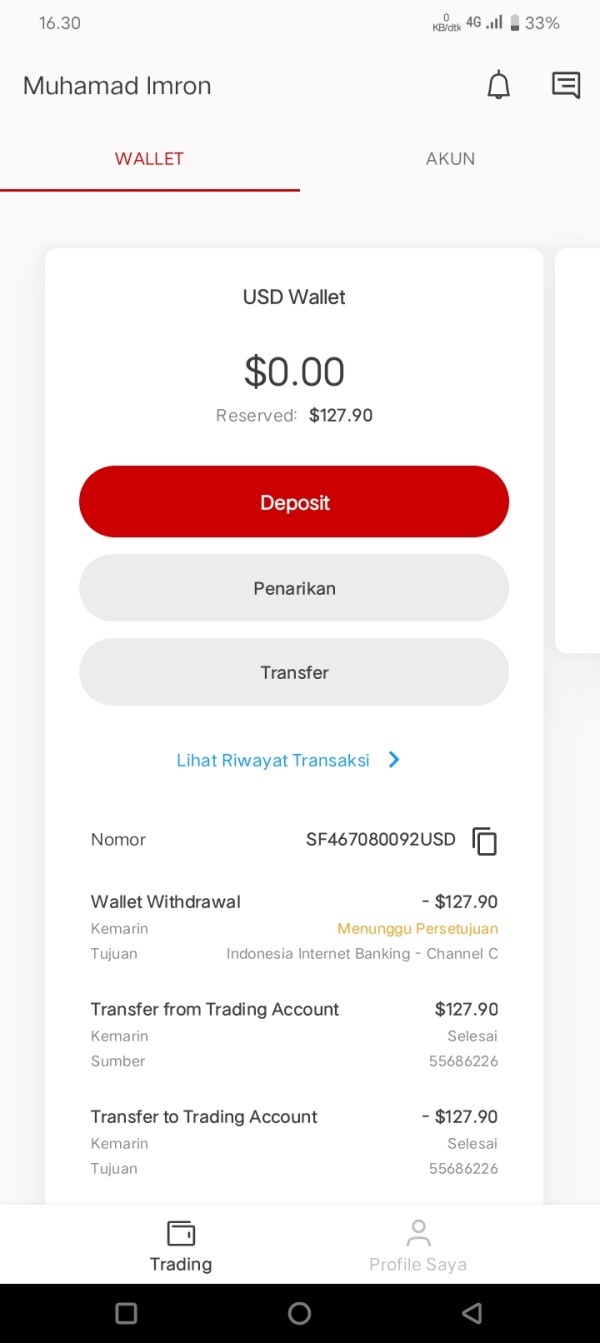 Awal nya saya setor dana sejumah 63 dollars. Tetapi saya tidak dapat trading di server yang di beri oleh Tickmill. karena itu saya belum sempat trading, pada akhir nya saya ingin withdraw. tetapi minum penarikan harus 80 Dollars karena saya ingin menarik uang saya. saya setorkan kembali dengan jumlah 63 dollar. Tetapi sedah lewat 1x24 jam. mereka tidak merespon sama sekali,dan saya rasa ini penipuan. saya harap ada petisi untuk tindakan hukum.