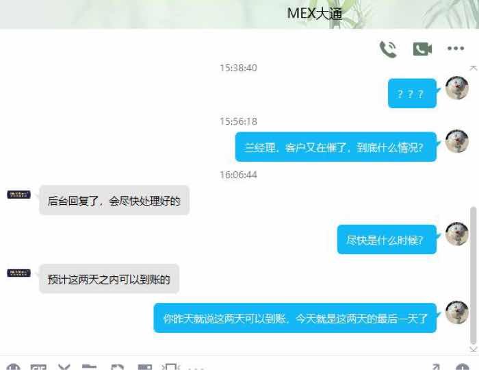 4.26日就开始提交出金申请,然后大通金融集团平台又把扣款的钱打回mt4交易账户,4月29日又重新提交出金申请,平台扣款了到今天一直不到账,联系客服也一直推脱
