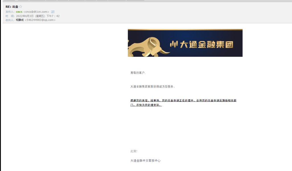 2022.6.3申请出金到现在,迟迟没出,也没消息,今天再次申请出金,之前的客服说他们把我MBG的资金转移到了大通的平台下。最近听说出不了金,自己尝试了,到现在还没出金。黑平台