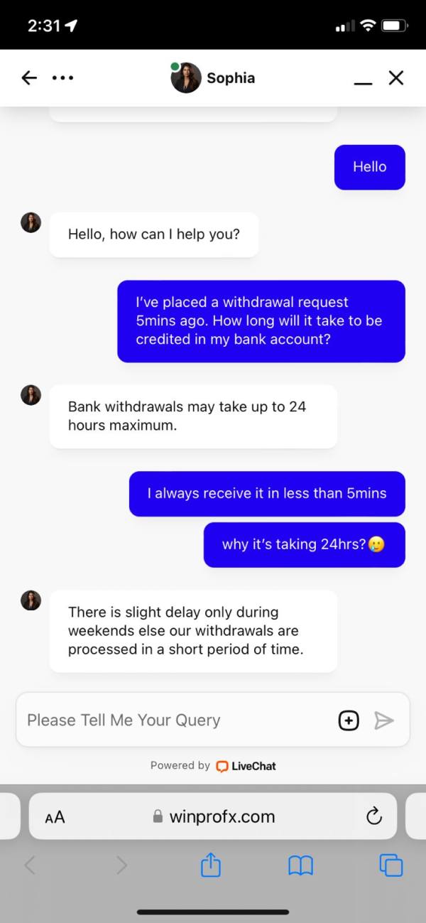 Winprofx has great customer support 🙌 I get replies instantly whenever I have some queries or something.