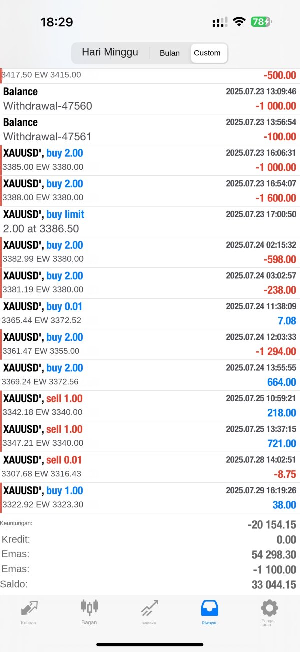 Saya mengajukan penarikan pada tanggal 23 Juli, tetapi hingga sekarang belum juga diterima. Sebelumnya, saya melakukan deposit lebih dari 50.000 USDT dan kehilangan lebih dari setengahnya, menyisakan hanya lebih dari 30.000 USDT sebelum memutuskan untuk meminta penarikan. Hingga saat ini belum diproses, dan setiap kali saya menghubungi layanan pelanggan, mereka hanya mengatakan sedang mendesak departemen keuangan.