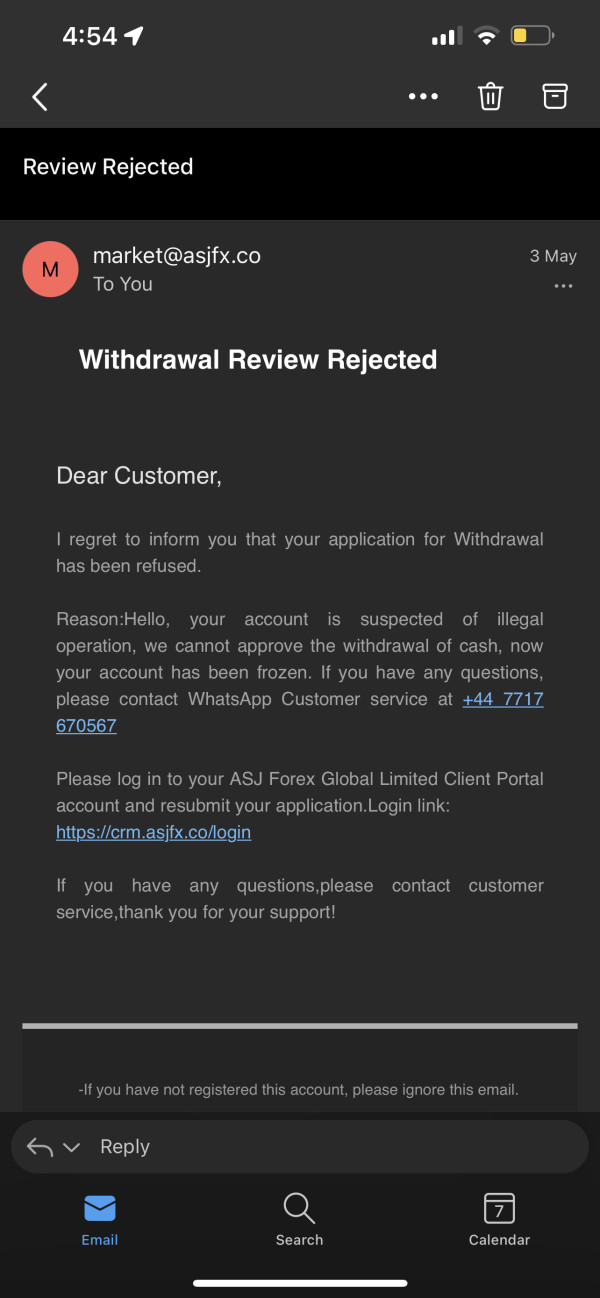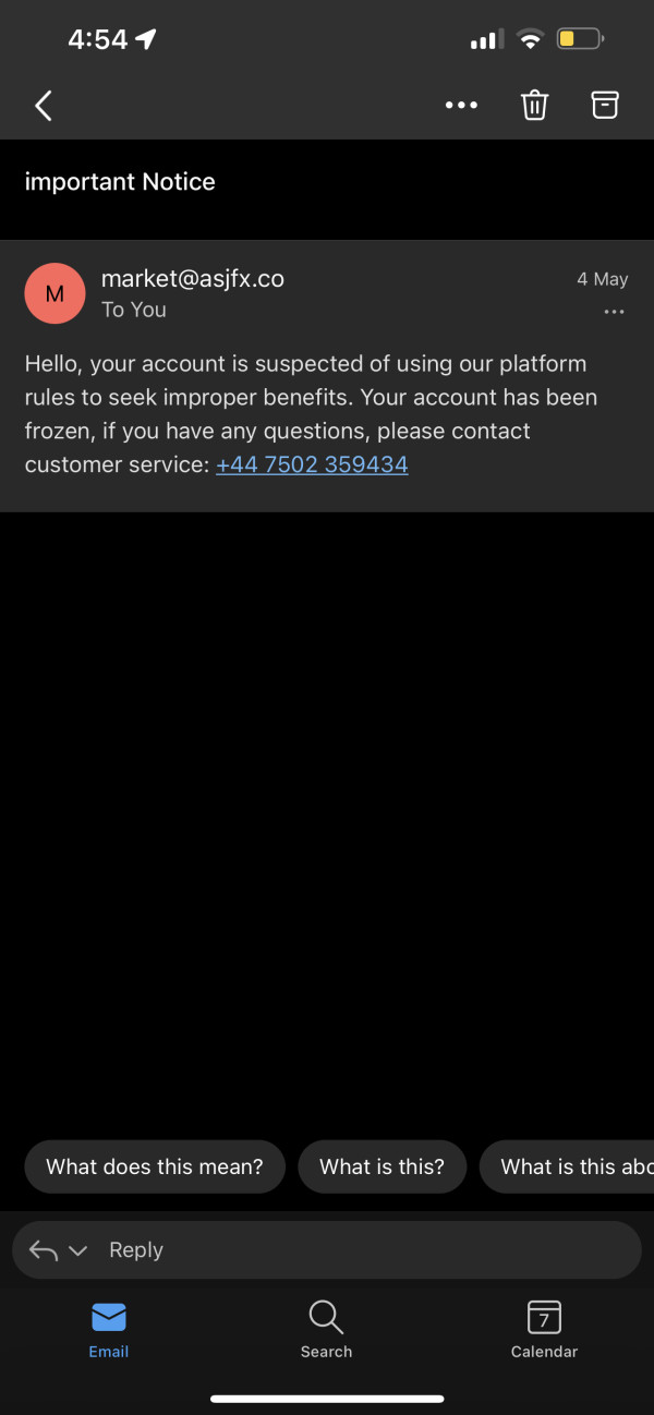 On 4th May 2022, my ASJ account was suspended in a sudden without early notification. I was unable to withdraw money & application was rejected. The customer service was not patient when dealing with my request. The day after account was suspended, then only received email stated that my account was suspected of using our platform rules to seek improper benefits. I was using ASJ platform for normal Forex trade in term of Buy/Sell, there was no other improper benefits in between. I was supect the platform would like to prevent me from withdraw my own money. I have a few downline & upline who ever withdrawn money facing the same situation, only those new account user who never withdraw money were still active & able to trade.