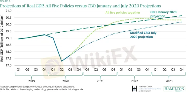 Jika pemerintah menghabiskan tambahan $ 2 triliun, ekonomi akan kembali ke lintasan yang diproyeksikan sebelum pandemi pada kuartal ketiga tahun depan. Pengeluaran tersebut akan meningkatkan produk domestik bruto riil sebesar 4% pada tahun 2021 dan 2022, Brookings Institution menemukan.