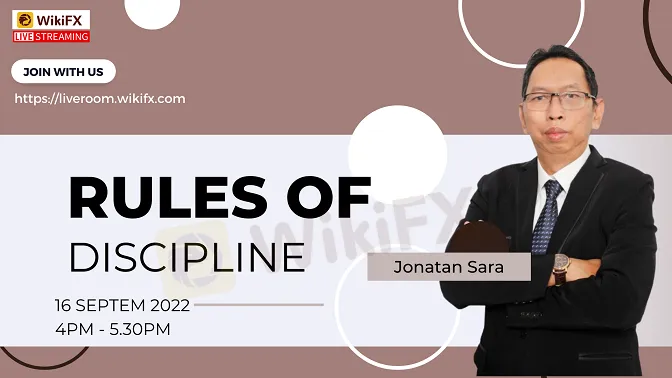 Bersiaplah untuk sore ini, Jumat, 16-September-2022, pukul 16.00 – 17.30 (UTC+7) Live Webinar WikiFX untuk tema “Rules of Discipline” bersama Jonatan Sara di laman “Langsung” pada aplikasi atau website WikiFX Indonesia.