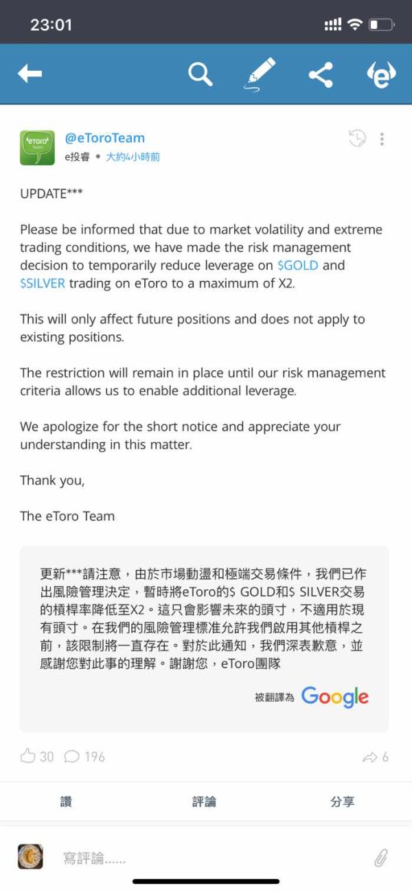 Di nuovo l'esposizione. eToro manipolato sulla leva delle materie prime.