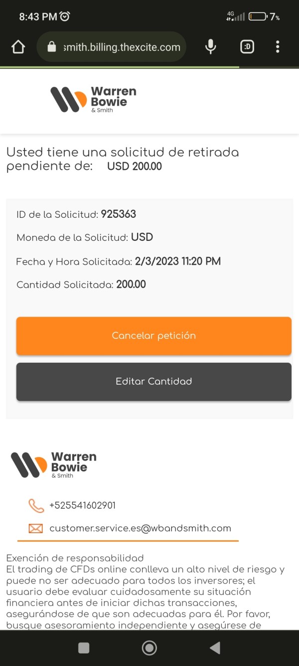 Uso Warren Bowie & Smith da alcuni mesi e sono davvero impressionato dal loro servizio. La piattaforma è veloce e sicura e offre una vasta gamma di strumenti di trading, rendendola perfetta sia per i trader principianti che per quelli esperti. Le risorse educative che forniscono mi hanno aiutato ad ampliare le mie conoscenze e migliorare le mie strategie di trading. Eccellente anche il team di assistenza clienti, sempre disponibile a rispondere a qualsiasi domanda che ho e risolvere eventuali problemi in modo tempestivo.