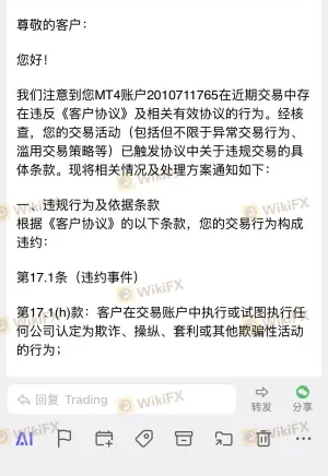 私はWikiFXに不正取引の報告を投稿し、プラットフォームのカスタマーサービスに積極的に連絡を取り、利益は放棄し、初期入金額の7,000ドルの返金のみを要求することを明確に伝えました。これは私ができる最大の譲歩でした。しかし、プラットフォームは2週間経ってもいまだに応答せず、カスタマーサービスからの返答も一切ありません。