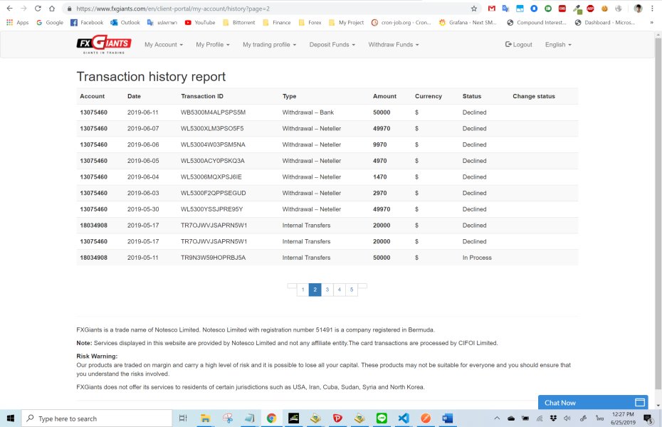 ทำได้การฝากเงินผ่านช่องทาง NETLLER และเริ่มเทรดตั้งแต่วันที่ 30/04/2019 จนถึงปัจจุบันก็ยังไม่สามารถถอนเงินได้ หลังจากพยายามติดต่อเจ้าหน้าที่ภายในโบรกเกอร์ FxGiants หลายครั้งก็ไม่ได้รับการตอบกลับใด ๆ กลับถูกเพิกเฉย มูลค่าความเสียหายรวม $103,000