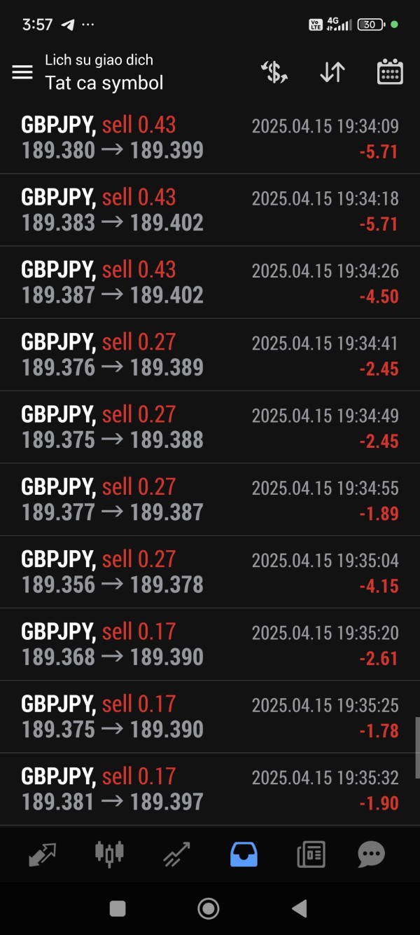 Tôi giao dịch bằng bột đổ ib sàn cũng cấp. Giao dịch 1 tuần lãi hơn 100%. Chiều nay tôi gửi yêu cầu rút 1000 usd trên 2500 usd trong tài khoản thì sàn hẹn 48 giờ mới giải quyết. Khuya nay trong lúc tôi ngủ thì còn bot này vào lệnh liên tục và không theo phương pháp quy luật trước đó, thừa lỗ liên tục nên chỉ trong thời gian chưa đầy 1 giờ tài khoản tôi chỉ còn hơn 20 usd. Như vậy đã có một sự cố ý để làm cho tài khoản của tôi giảm sút không còn rút tiền được nữa,Rút tiền chậm trễ