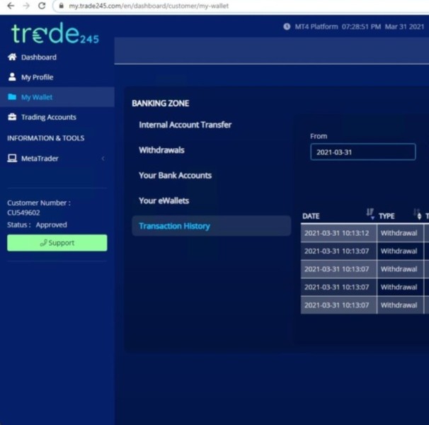 Trade robbed my deposit $990 I deposited $998 and lost 8$ after trading, now Trade245 rejected my withdraw request of the remaining $990