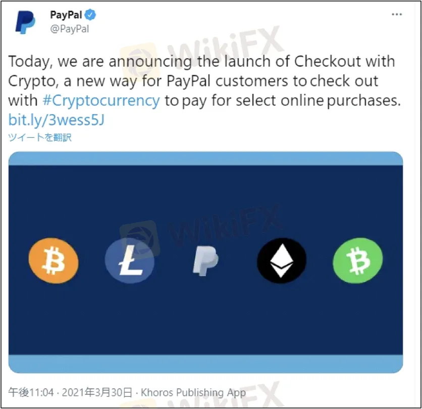 (https://newsroom.paypal-corp.com/2021-03-30-PayPal-Launches-Checkout-with-Cryptoを参照)