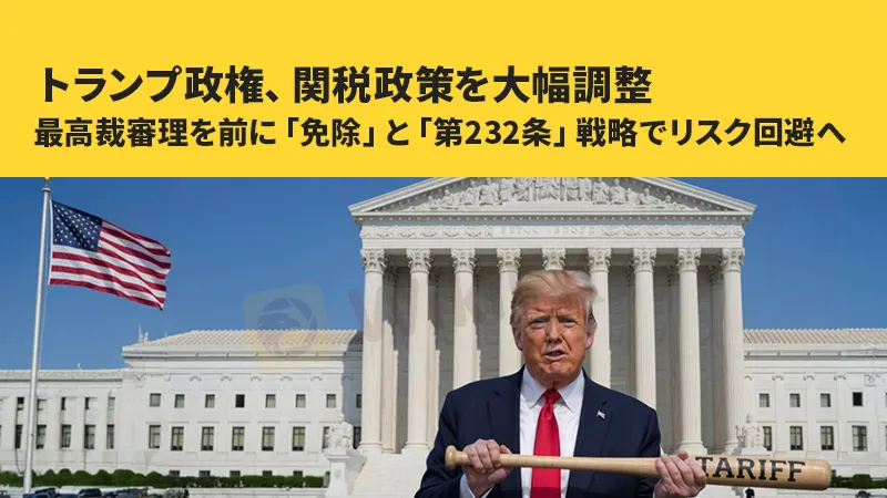 概要:トランプ政権が関税政策を大幅転換。最高裁審理を前に免除拡大と第232条活用で法的リスクを回避、米国貿易戦略の新局面へ。 キーワード:トランプ政権 関税政策 第232条 貿易拡張法 アメリカ 貿易戦略 関税 免除 報復関税 最高裁 米国 経済政策