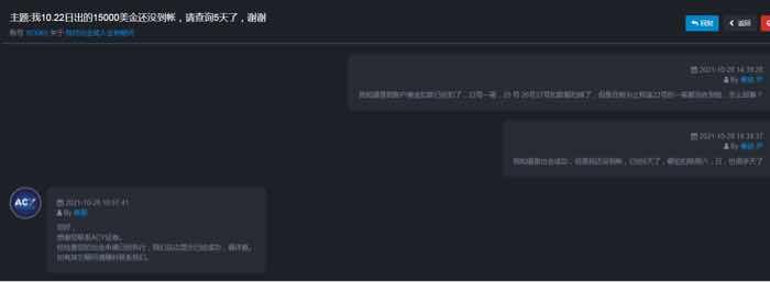 Acy平台分别在22 25 26 27日出金,目前为止连22日出金还没到账,已联系客服和平台,以下为解释!最长时间已经6天了,并没有像平台说的哪样1-2内出金可以到账