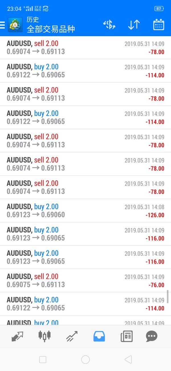 5.21日被咸鱼的钓鱼者勾住了。说智能加人工EA 月利润10%-15%之间。稳定盈利跑了三年,诱导我开户入金,说五千美金就可以代挂。然后入金成功后,代挂一天就亏损五十美金,说这个软件需要调试,结果5.31日晚上八点左右,我登录MT4查看,发现登录不上,赶紧发邮件修改密码,再次登录发现账户已经爆了。五分钟之内就频繁重仓下单,五千美金几分钟就爆了。 后来,让一个资深的朋友给我分析情况,他说你怎么那么傻,人家光手续费都能赚你80%,也就是4000美金,五分钟就通过刷单到人家的账户。 不求什么,只为让大家都引以为戒,外汇市场是很好但是骗子也多,引以为戒。