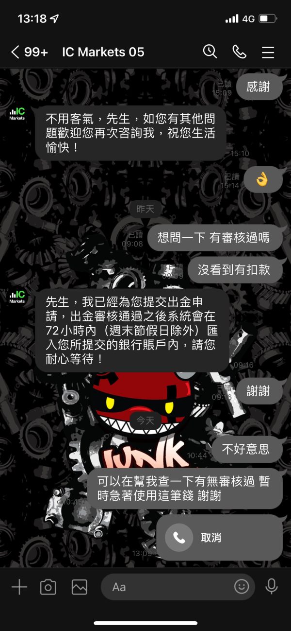 交易軟體 認識 還好只入金1000美 有出金166美 之後要在出900美 都沒回應 https://www.icmarkets-tw.com 附上詐騙網址