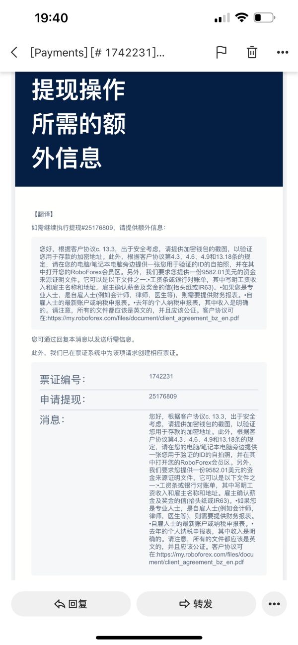 正常交易!robo找各种理由不给出金!永远提交不完的资料!配合提交了快3个月!一直找各种理由让你证明