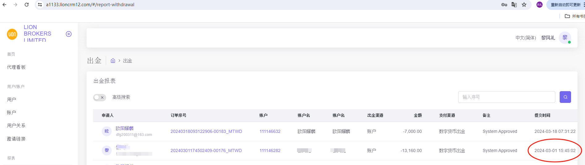 O saque de mais de 10.000 yuan em 1º de março ainda não foi recebido. Já é outubro, por favor, processe o saque.
