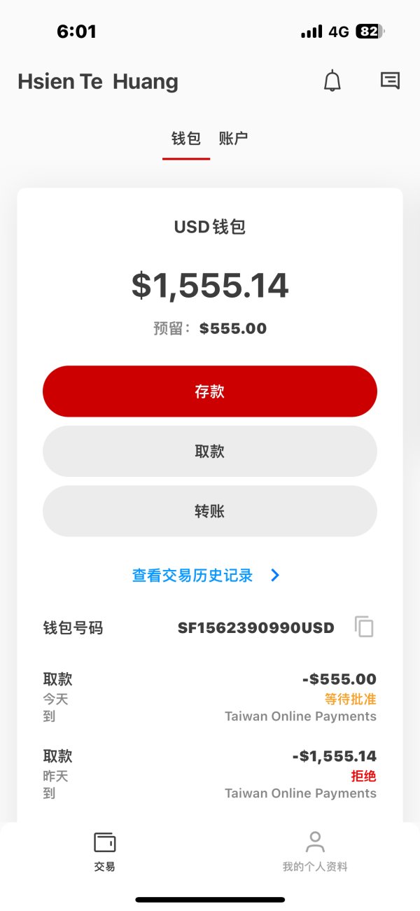 入金四分鐘 出金三催四請無結果又拒絕 入金操作約一週 一週後要出金失敗 原本出金1555匯款 555usdt 平台拒絕555ustd並表示要用一樣入金發的方式出金 結果另外這1555用一樣的方式出金也是被拒絕(原本用匯款 出金也是匯款) 拒絕理由如圖 諮詢客服後再次重新申請後也是被拒絕出金 這次連拒絕理由都沒說明 客服與email也都不回覆 僅僅是2110美金這小小的金額都會遇到詐騙