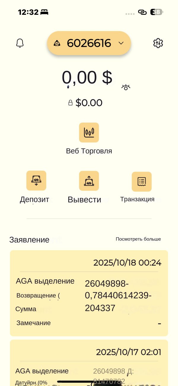 Я открыл счет в GF, полагая, что мой инвестиционный фонд будет в безопасности у них. Но GF сотрудничала с AGA и обманула все мои деньги, позволив AGA снять весь инвестиционный фонд, несмотря на то, что AGA является PAM-менеджером и торговым ИИ-инструментом. Я ОЧЕНЬ РАЗОЧАРОВАН ИХ БИЗНЕС-ПРАКТИКОЙ И РЕКОМЕНДУЮ ИНВЕСТОРАМ ДЕРЖАТЬСЯ ПОДАЛЬШЕ.