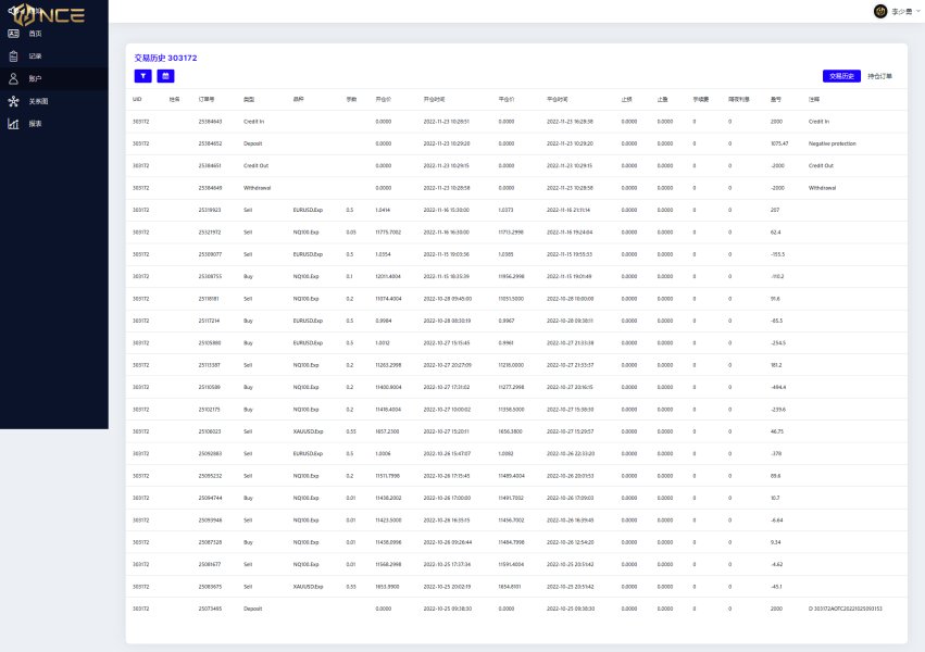 本人于十月底开始在NCE入金交易,到11月中旬为止,爆仓过三次,每次爆仓后接着入,期间出过一次金,一天之内到账了,发现出金很迅速,以为NCE是个不错的平台。身边朋友听说了出金速度后,也来NCE开了几个账户(将出金快的信息 告诉给朋友 是本人为最后悔的事情),期间共计入金36000USD左右。在11月20号左右,由于这段时间运气比较好,账户逐渐开始盈利了,甚至把之前的亏损都赚回来还盈余19000左右,期间有个朋友看账户赚了2000多,担心后续继续做亏,提前出金不做了。这个时候NCE突然就关闭了朋友和我的账户以及门户,NCE让销售单方面通知 我们涉嫌内部对冲,扣除所有盈利,NCE也不给证据证明我们内部对冲,也不看15号之前的3次爆仓,看账户赚钱直接扣盈利。下面是本人的交割单,也不清楚风控是如何认定为内部对冲的NCE任意关闭所有账户,发邮件不回。现在NCE只退 总入的本金,因为赚2000多的客户出过了,所以有账户本金不退,让找赚了2000多的客户去要。任意关闭账户,克扣盈利,本金也不给退,涨见识了,这次是掉到坑里了,希望我的经历能做出警示,引以为鉴。
