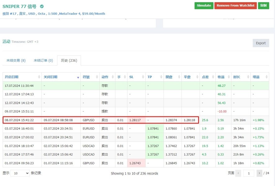 您好, 我的mt4帳號:5090655,訂單ID:40550969 1. 此訂單於 2024.07.08 15:41:22建立,本人並未執行平倉;此帳號採託管跟單,另一個同託管帳號的訂單,正常平倉於 2024.07.09 08:58:08 2. 此訂單有收取庫存費,且email每日報表也當時也顯示開倉中。 3. 此訂單無故於 2024.07.09 00:08:41被平倉於1.28236 4. 回看GBPUSD於 07.09 00:08附近的歷史數據,價格應於1.28057~1.28067之間,與已被平倉價格1.28236相差很大 本人於發現訂單被無故平倉時,2小時內立即於官網回報聯繫Tickmill客服;因未收到任何回覆,於隔日2024.07.09再次去官網回報問題,最後僅收到2封回撥請求單。