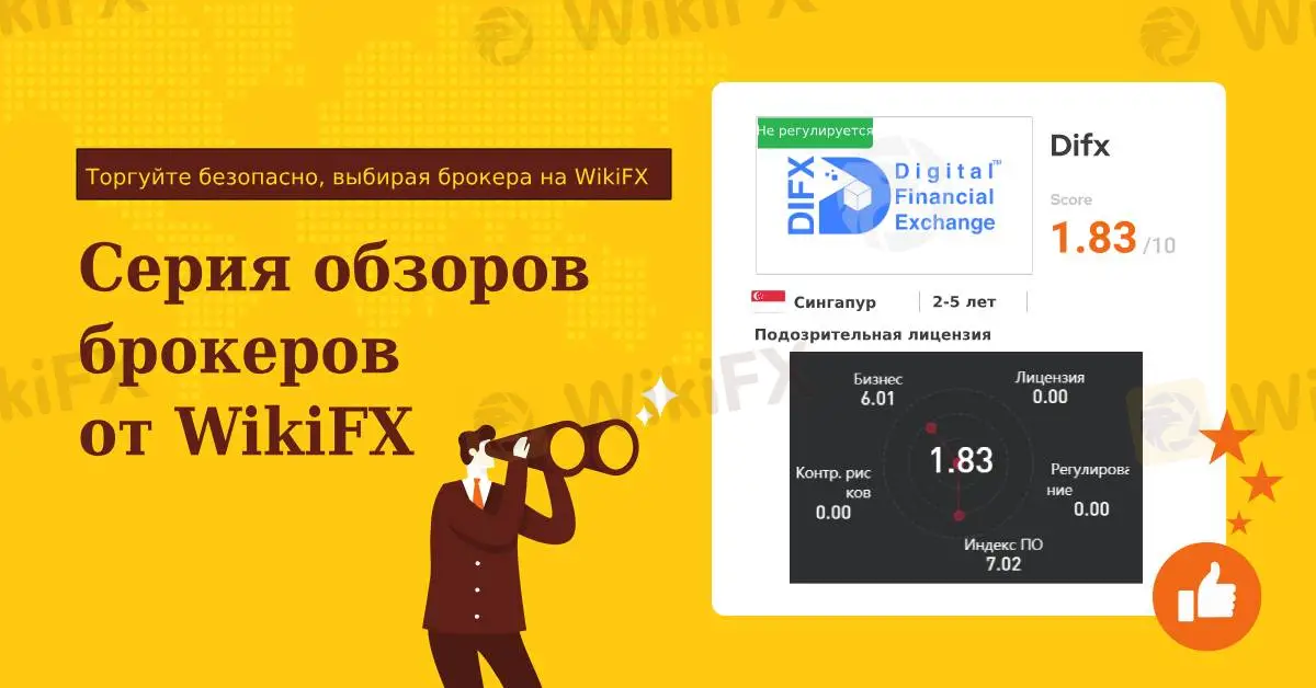 Difx — это брокер, который предлагает широкий спектр услуг и функций. Однако отсутствие регулирования может быть потенциальным недостатком для трейдеров. WikiFX содержит информацию о более чем 50 000 мировых форекс-брокеров. Это дает вам огромное преимущество при поиске лучших форекс-брокеров. Вы можете открыть наш сайт (https://www.wikifx.com/ru), если хотите узнать больше о надежности конкретных брокеров. Кроме того, по следующей ссылке (https://www.wikifx.com/ru/download.html) можно бесплатно скачать приложение WikiFX APP. WikiFX APP работает как на Android, так и на IOS, предлагая самый простой и удобный способ поиска интересующих вас брокеров.