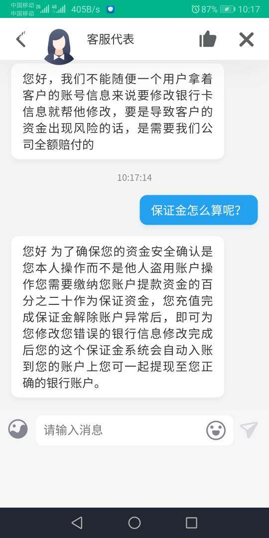 FXCC平台出金时说银行账户错误,需要缴纳20%保证金才能修改信息出金,平台客服说给七天时间,结果时间不到就无法登录。