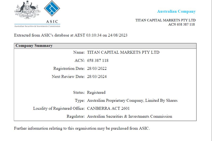 TITAN CAPITAL MARKETS DON'T HAVE VALIED BROKER LICENCE ITS REGISTERED IN AUSTRALIA AS A Australian Proprietary Company, Limited By Shares, ITS A BIG SCAM LIKE MTFE