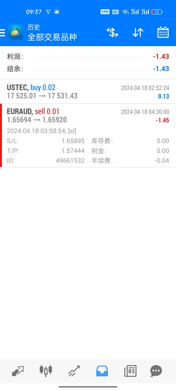 下的单行情都没有到达止损点,已经止损了,真恶心,滑点严重,以前用得好好的,最近不知道发什么神经,不敢用了。联系平台客服居然没人理我,骗子平台。