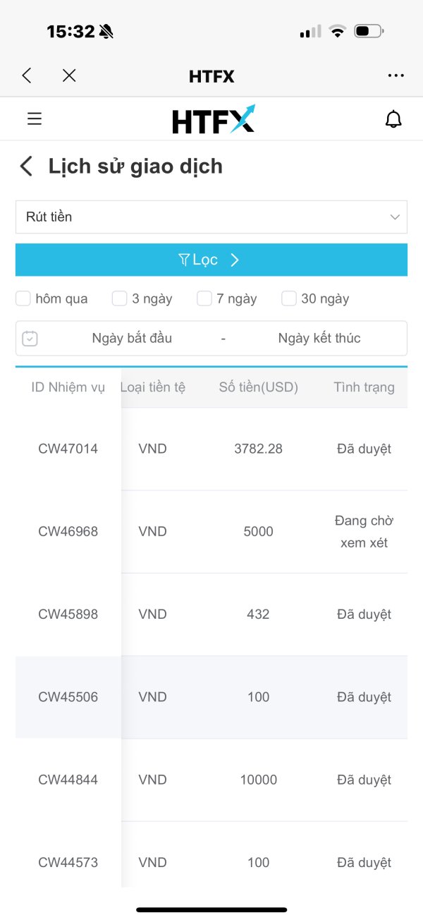 Tôi tên là : Trần thị Tâm hiện đang sinh sống và làm việc tại Việt Nam. Tôi mở tài khoản giao dịch tại sàn HTFX từ khoảng tháng 05/2025 Gần đây nhất tôi có nạp tiền vào sàn Htfx để giao dịch nhưng sau một vài tháng giao dịch không hiệu quả , nên tôi quyết định làm lệnh rút tiền. Ngày 11/07/2025, tôi tiến hành làm lệnh rút tổng số tiền 5.000 USD từ tài khoản giao dịch về tài khoản ngân hàng cá nhân. Tuy nhiên, đến nay (ngày 1/08/2025), lệnh rút vẫn chưa được xử lý dù tôi không vi phạm bất kỳ quy định nào của sàn, không nhận được lý do rõ ràng hay bất kỳ phản hồi chính thức nào từ phía HTFX. Tôi đã gửi nhiều email và tin nhắn yêu cầu giải thích, nhưng đều bị phớt lờ hoặc trả lời vòng vo, không cung cấp thông tin cụ thể về thời gian xử lý rút tiền. Điều này khiến tôi nghi ngờ sàn HTFX có dấu hiệu chiếm dụng vốn của nhà đầu tư, không đảm bảo quyền lợi hợp pháp cho khách hàng. Tôi kính đề nghị WikiFX xác minh, hỗ trợ xử lý và cảnh báo sớm về dấu hiệu bất thường của sàn HTFX