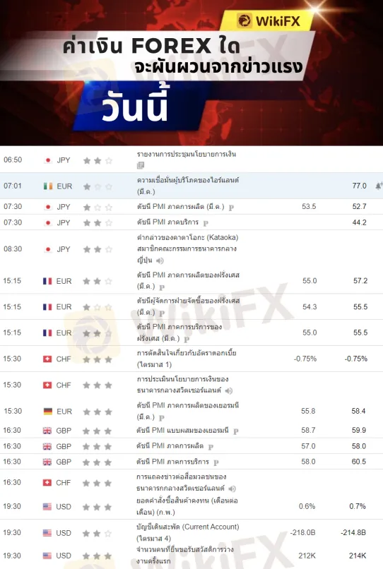 ตารางข่าว Forex ประจำวัน (24 มีนาคม 2565)