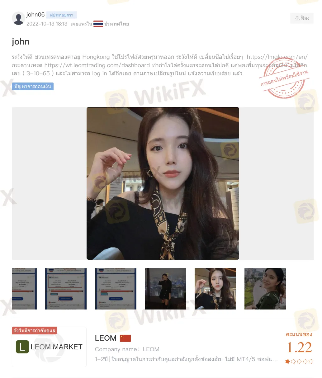 เตือนภัย ! โบรกเกอร์ LEOM ใช้โปรไฟล์สาวสวยมาหลอก สุดท้ายหอบเงินหนี !
