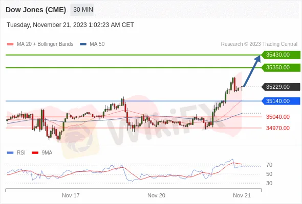 ตำแหน่งซื้อที่สูงกว่า 35140.00 โดยมีเป้าหมายที่ 35350.00 และ 35430.00 ในส่วนขยาย