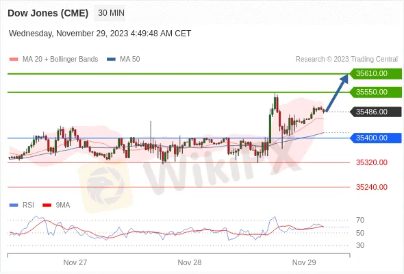 Dow Jones (CME) (Z3) การซื้อขายระหว่างวัน: แนวรับระหว่างวันประมาณ 35400.00