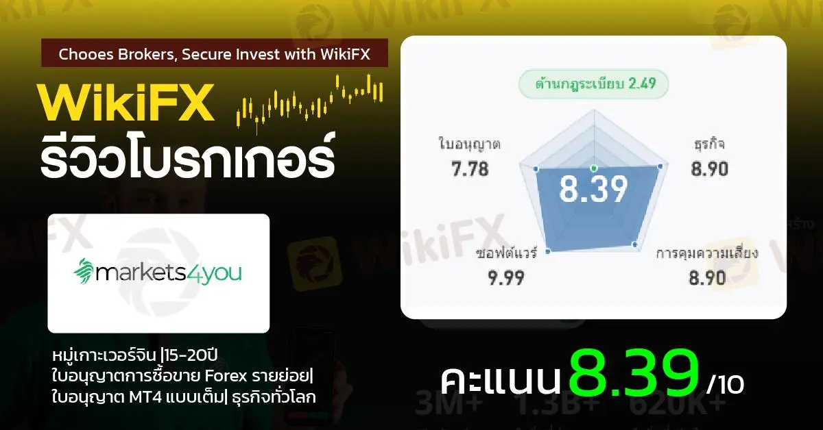 โดยสรุป โบรกเกอร์ Markets4you มีคะแนนประเมินบน WikiFX อยู่ที่ 8.39/10 อย่างไรโปรดใช้วิจารณญาณในการตัดสินใจ และระวังความเสี่ยงที่อาจจะเกิดขึ้น อ่านข้อมูลเพิ่มเติมเกี่ยวกับโบรกเกอร์คลิก