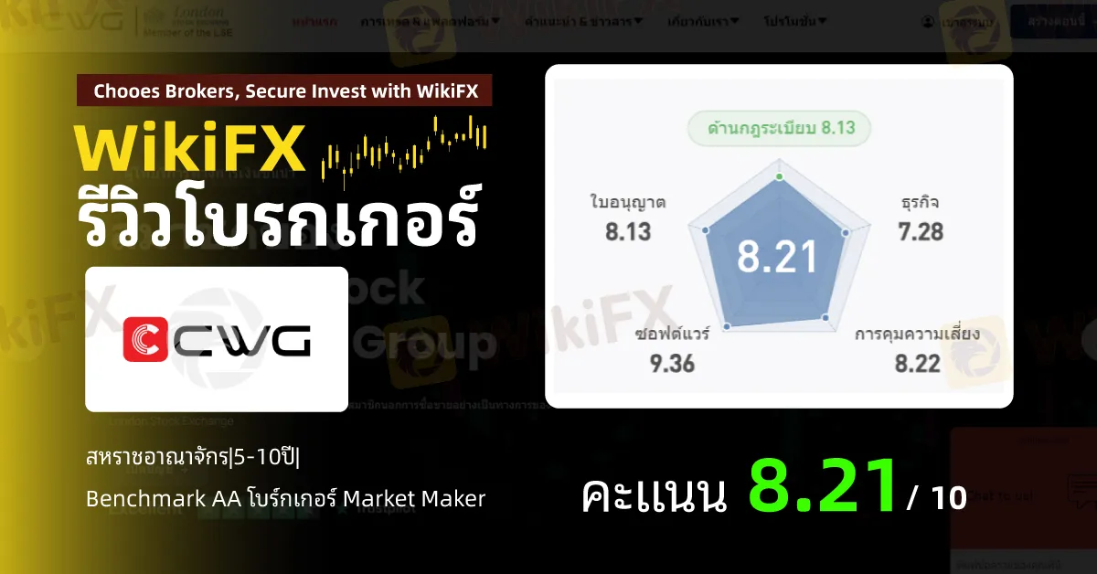 โดยสรุป โบรกเกอร์ CWG Markets มีคะแนนประเมินบน WikiFX อยู่ที่ 8.21 /10 อย่างไรโปรดใช้วิจารณญาณในการตัดสินใจ และระวังความเสี่ยงที่อาจจะเกิดขึ้น อ่านข้อมูลเพิ่มเติมเกี่ยวกับโบรกเกอร์คลิก https://www.wikifx.com/th/dealer/6251173673.html