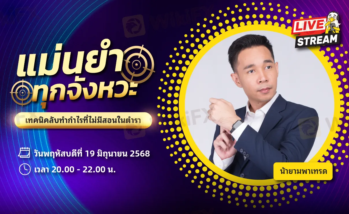 บทคัดย่อ:พบกับน้ายามพาเทรดในวันพฤหัสบดีที่ 19 มิถุนายน 2568 เวลา 20.00 – 22.00 น. บนไลฟ์สดในแอป WikiFX แล้วพบกันครับ!