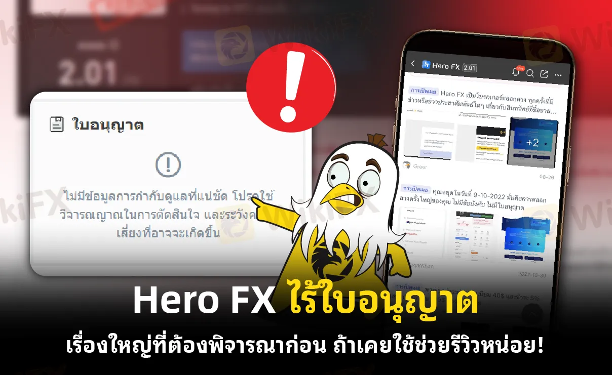 ตามข้อมูลจาก WikiFX ระบุว่า Hero FX ไม่มีใบอนุญาตจากหน่วยงานการเงินที่เชื่อถือได้ และสถานะการกำกับดูแลถูกจัดอยู่ในระดับ น่าสงสัย ทำให้นักลงทุนเสี่ยงต่อการไม่ได้รับการคุ้มครองกรณีเกิดข้อพิพาท