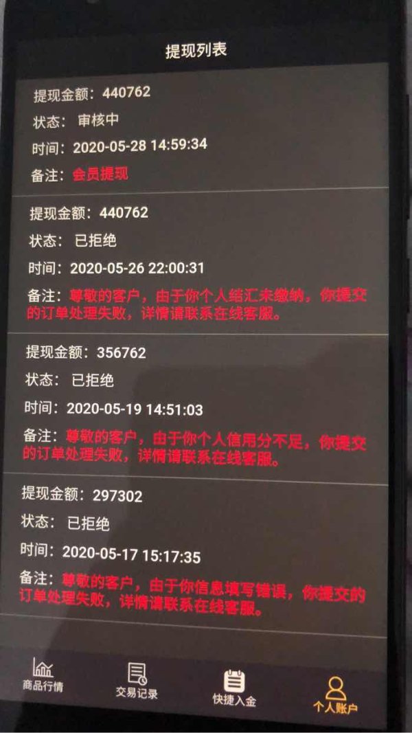 无法出金,明明正常交易,就算资料填写错误,我修改了,后面还有一堆问题等着你缴纳资金,这不是变相的骗钱吗?