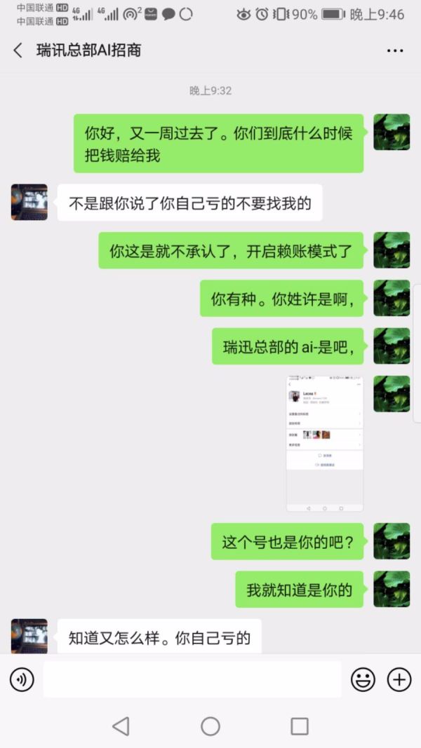 拿着我的账户疯狂交易,结果导致账户亏损严重不赔偿,自己说自己北京开公司,后来说是是上海。是瑞讯平台北京办事处。做人很没有诚信。不知道哪里加了我,结果办事特别不靠谱。导致我亏损很严重。这是我信用卡套得钱,害得我要家破人亡了。