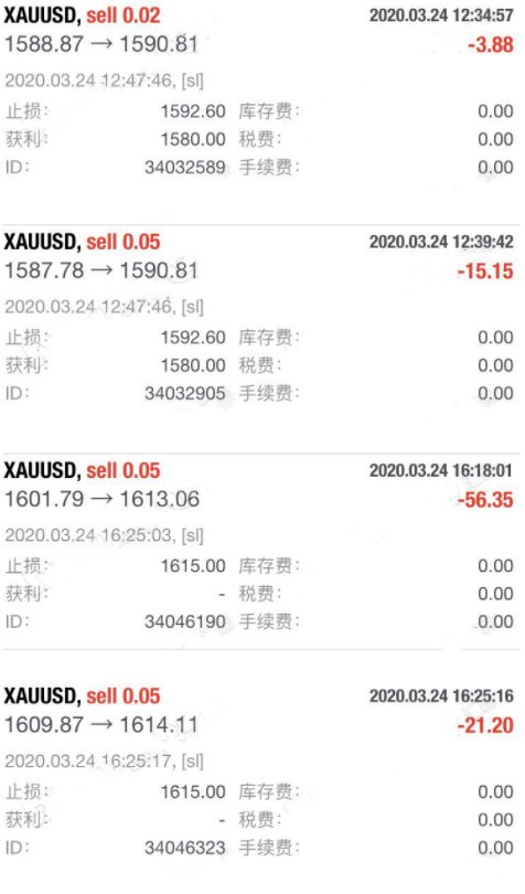 设定止损价格,均到达就强制平仓了,不仅一单,而是多单,请看图片。