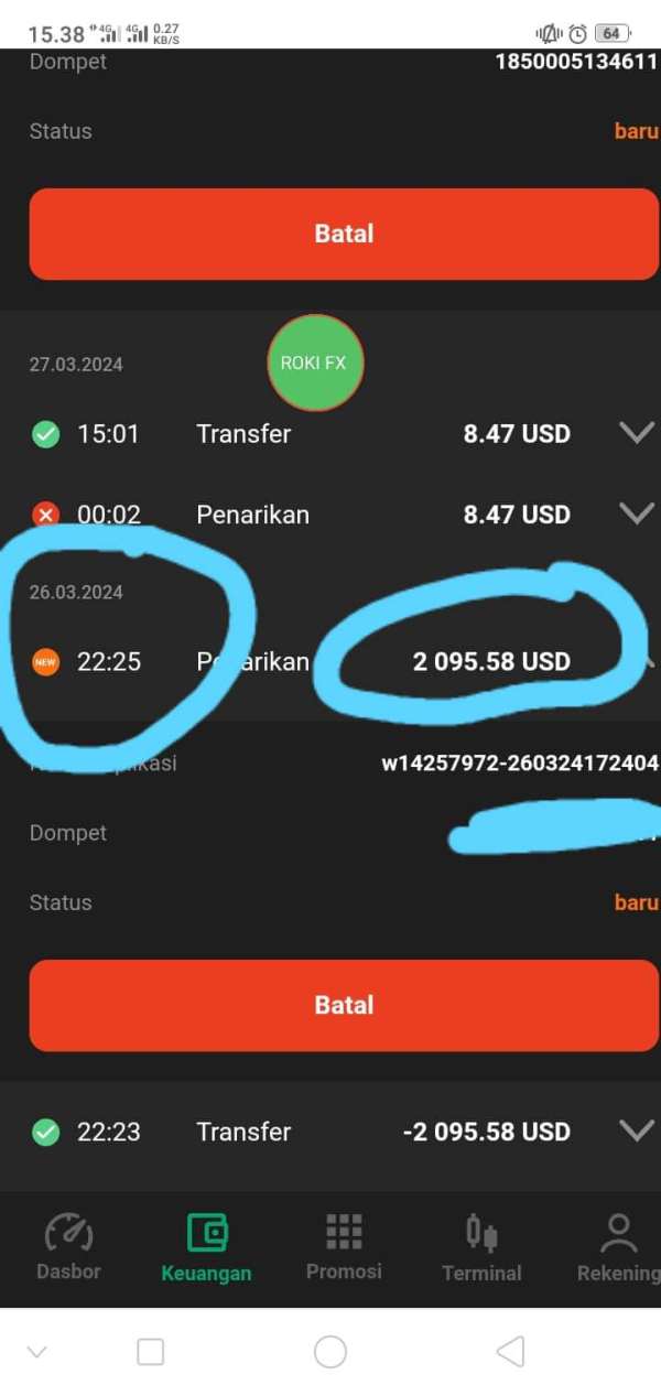 penarikan 2000$ lebih belum dibayarkan
