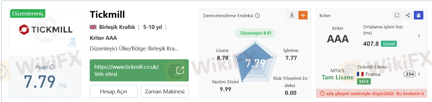 Tickmill, yeni başlayanlardan deneyimli profesyonellere kadar çeşitli yatırımcı gruplarına uygun güvenli ve dinamik bir ticaret ortamı sunan saygın bir brokerdır. Rekabetçi koşullar, çeşitli piyasa erişimi ve güçlü düzenleyici denetim ile Tickmill, forex ve CFD ticareti yapmak isteyenler için güvenilir bir seçenek olduğunu kanıtlamaktadır. Fakat, Tickmill'in WikiFX'te kayda değer bir kişi tarafından teşhir edildiğini ekleyelim. Potansiyel müşterilerin dikkatli davranmaları ve bilinçli bir karar vermek için yatırımcı geri bildirimlerini ve düzenleyici durumu gözden geçirerek kapsamlı bir araştırma yapmalarını öneriyoruz. Tickmill ile yatırım yapmayı düşünenler için, daha detaylı bilgi almak veya bir hesap açmak için resmi web sitelerini ziyaret etmek faydalı olacaktır.