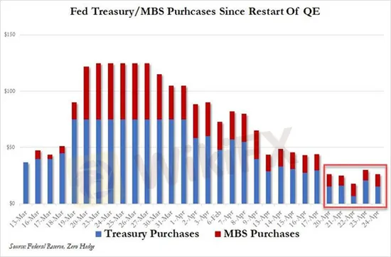 Tuần trước (12 - 17 tháng 4) dữ liệu mua vào trái phiếu Kho bạc Hoa Kỳ đã giảm xuống còn 30 tỷ đô la mỗi ngày. Khía cạnh này ngụ ý rằng hệ thống tài chính của Hoa Kỳ đã bước đầu ổn định, đồng thời cũng cho thấy khả năng của Fed trong việc đối phó với những phản ứng khẩn cấp đối mà sự bùng phát dịch bệnh đã gây ra.