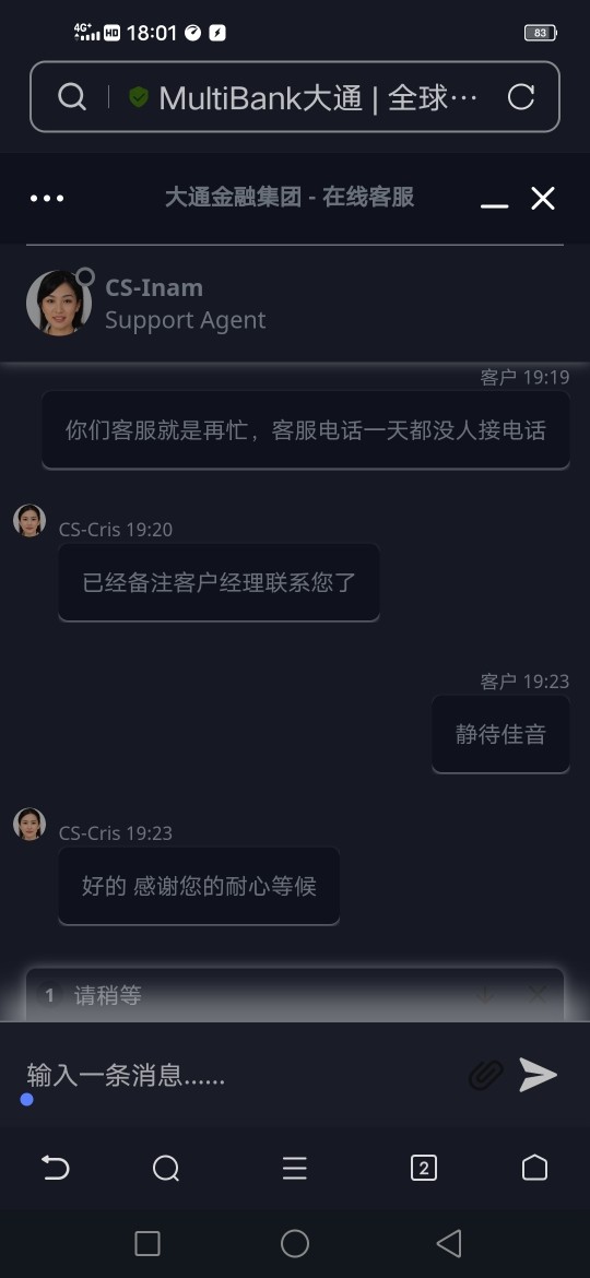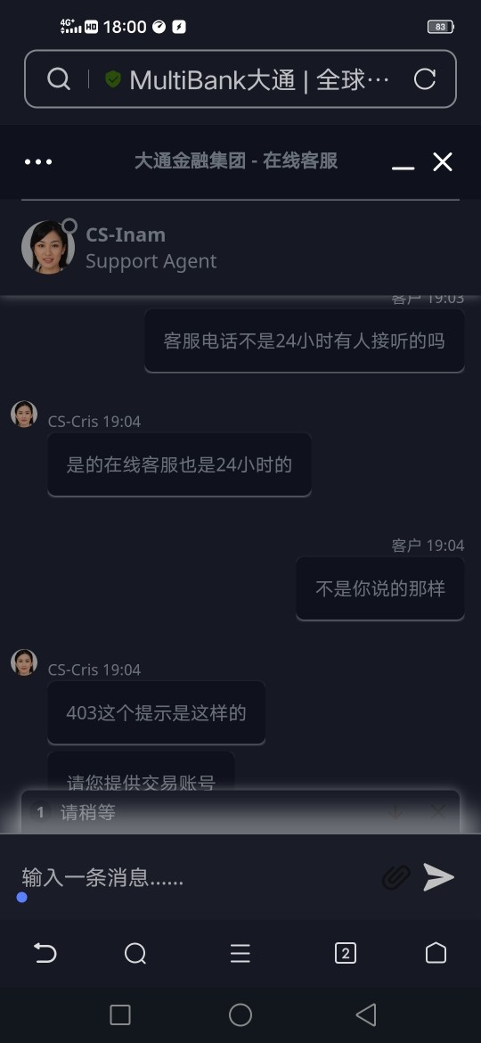 大通金融无法入金,导致爆仓!几个月时间也不给处理!