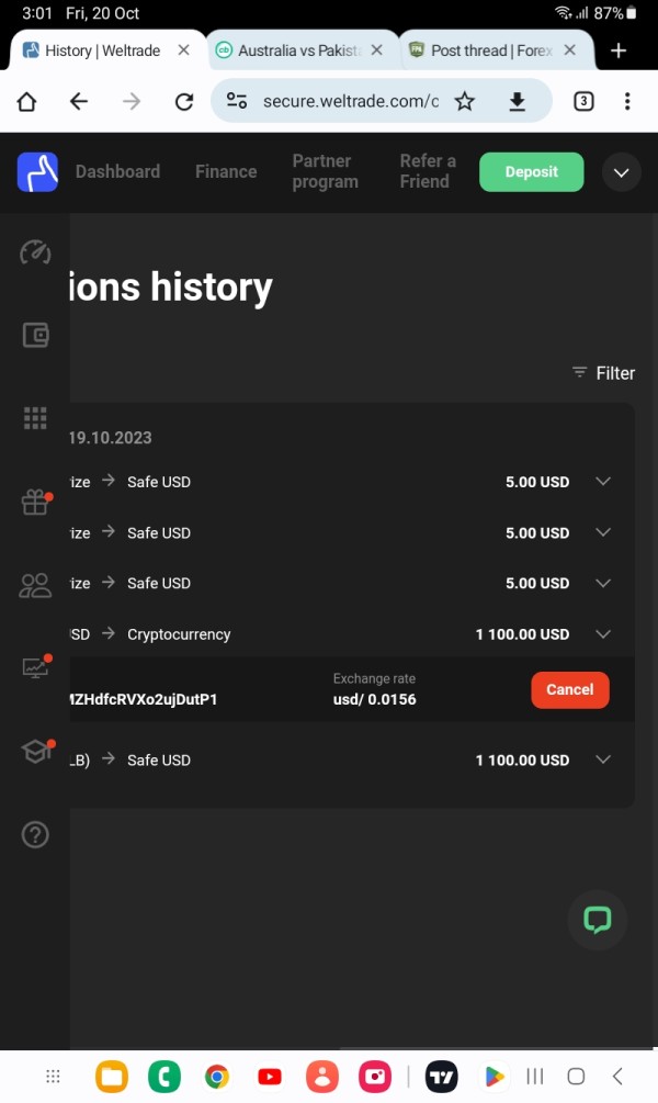 My 1100usd withdrawal pending money deducted from account not sending to my litcoin wallet they offer 30min withdrawal but already 1 day no response chat support ignore me telling they send a mail . No response I feel I got scammed My ID- 912928