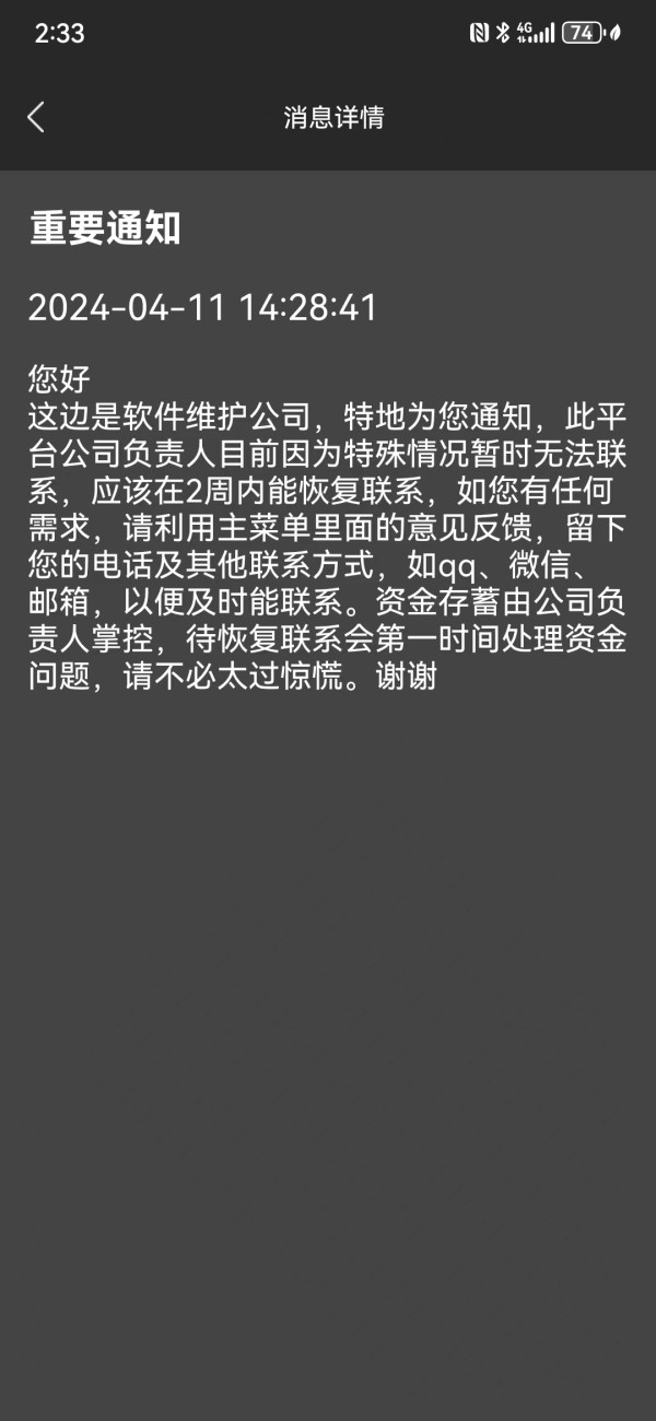主帐号失联,无法出金