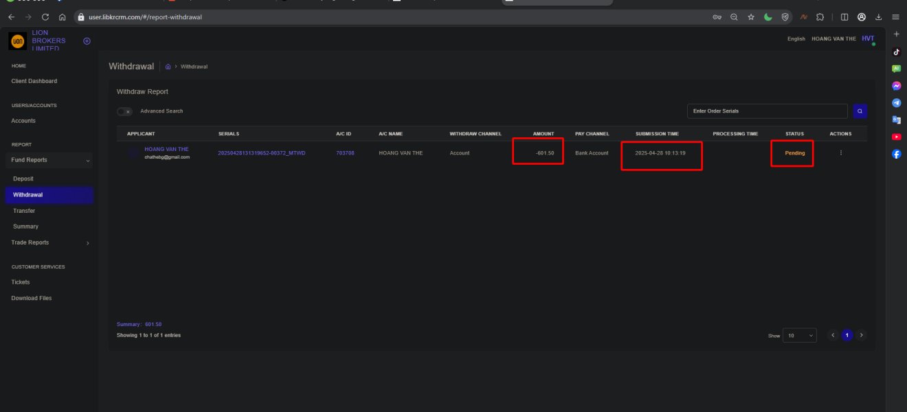 sàn không cho rút tiền , lệnh giao dịch bị hold. Trạng thái số dư tài khoản sau trên web . Nhắn gmail không ai hỗ trợ.. Support sàn trên telegram scam khách hàng