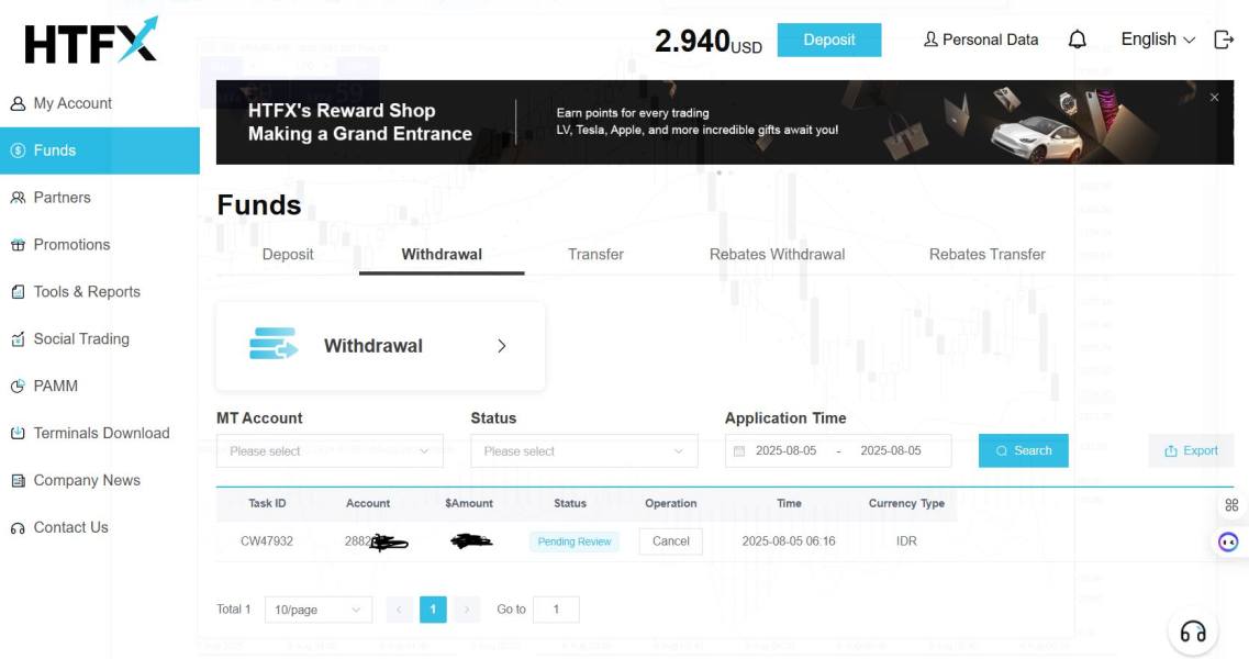 It also happenned to me , pending review, I just hope the HTFX keep their reputation as Fastest Growing Broker 2025. Please fix this WD system!