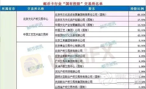 为此,邮币资讯通过查阅大量资料,特整理了一份邮币卡行业内具有国资背景的交易场所名单,并附有其控股信息。